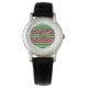 Un reloj con un lindo patrón de sandía. Corteza verde en capas de rayas junto con una capa de rayas rosas con semillas negras dentro. Diseño divertido y veraniego.