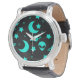 Reloj De Pulsera Patrón extraño turquesa con estrellas y lunas