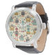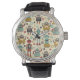 Reloj De Pulsera Patrón ilustrado de robots retro divertidos (crema