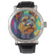 Una representación artística estilizada de un Yorkshire Terrier con colores vibrantes y audaces y un fondo colorido abstracto. Imagen perfecta para mostrar creatividad, temas de mascotas y arte digital moderno.