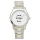 Estilo: Reloj de pulsera de plata sobredimensionado Unisex Manténgase perfecto con un reloj de pulsera sobredimensionado de personalizable Unisex de eWatchFactory. Listo para tu texto, arte, diseños o fotos puedes hacer un gran reloj para ti mismo o crear uno como regalo! Reloj de muñeca Unisex Material: Cara: Correa de acero inoxidable: Acero inoxidable Dimensiones: Cara: 1.24" de diámetro Correa: 8.5" x 0.82" Funda: 1.57" de diámetro Peso: 0.319 lb analógico de 3 manos Japón Cuartz® Impresión de personalizado a color completo en la cara Cierre de gallo plegable Agua Resistencia: Hasta 3 (98.4 pies) 1 año de garantía limitada de los fabricantes Batería incluida Este producto se recomienda para mayores de 13 años
