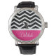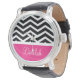 Reloj De Pulsera Personalizado de Chevron Rosa Blanco Negro