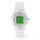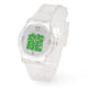 Personalizable El ideograma verde del Dragón sobre el ilustracion de corte de papel como fondo. Puede cambiar fácilmente el color del ideograma haciendo clic en el botón personalizar. Diseño en Silicone Strap Clear watch con números de estilo joven. Perfecto para el Año Nuevo Chino del Dragón o Cumpleaños (personas nacidas en el Año Dragón).