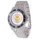 Este reloj de acero inoxidable está decorado con un escudo de Personalizado de Softball Team que puede ser personalizado de 3 formas diferentes con el estado, ciudad, ciudad, nombres, etc,