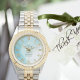 Personalized Blue Marble Men’s Two-Tone Gold & Silver Watch – Elegant Couple’s Wedding or Anniversary Gift.