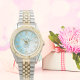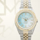 With its fluted gold bezel, silver-and-gold metal link band, and sophisticated blue marble face, this timepiece blends strength with sentiment. The gold Roman numerals and minimalist dial design create an effortlessly classic look — perfect for the modern gentleman who values timeless style.