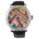 Este reloj masculino tiene un diseño retro de los años 70 hecho con capas de arriba hacia abajo en tres lugares, todo en colores retro.