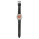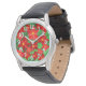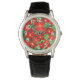 Este reloj masculino tiene un diseño de Navidades de poinsettias esparcidas alrededor en un campo de rayas verdes.