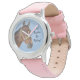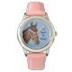 Un impresionante reloj de pulsera ecuestre rosa y púrpura nuevo con una pintura de un caballo de pura raza con un halter multicolor y la leyenda "¡Prefiero andar! A tu pequeño ecuestre le encantará este reloj en cualquier ocasión.