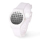 Mod Pop Dots en tonos de círculo degradado de gris claro a negro, un reloj deportivo blanco.