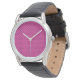 El reloj masculino de moda y elegante presenta un color "violeta rosa" púrpura/rosa de 2022 con un patrón de puntos negros.