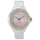 Reloj De Pulsera Purpurina rosa con flores de cerezo | Monograma Gi