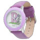 Añada el nombre de su hijo al reloj de este niño, adecuado para niño o chica, que tiene una gran inicial "R" y un conejo. Diseñado por Simply Put by Robin; imagen a través de la suscripción con Graphics Factory. Si le gusta este diseño, pero no puede encontrar el inicial que está buscando, haga clic en "Preguntar a este diseñador" a un artista de correo electrónico.