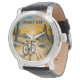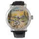 pintura al atardecer de una bicicleta en el desierto rodeada de cactus