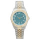 Este reloj masculino tiene un diseño inspirado en Kandinsky de conjuntos de cuatro rectángulos hechos por una continua línea negra que se repite a través del diseño en un campo de verde azulado. Si te gusta el diseño pero prefieres colores diferentes, envíame un mensaje.