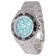 Este reloj masculino tiene un diseño moderno de mediados de siglo de rectángulos abiertos en rectángulos azules sobre rectángulos abiertos en el azul del huevo de robin.