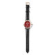 personalized watch, red dial, gold watch, white leather strap, elegant wristwatch, monogram gift, luxury accessory, custom initials, timeless fashion, classic design