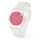 Reloj De Pulsera Red Pink Glitter Clear Strap Women's Watch