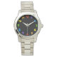 Uhr mit Ziffernblatt aus den Regenbogenfarben auf transparentem Untergrund.