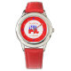 Este elefante republicano rojo, blanco y azul es perfecto para el político en ciernes. El fondo es blanco para acentuar el elefante central y el texto. El texto existente dice, "Republicano en entrenamiento" y se puede cambiar para personalizarlo con sus propias palabras. El anillo rojo exterior es el fondo de los números azul y blanco para marcar cada hora.