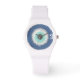 Un diseño rústico y abstracto basado en el encanto tradicional griego de la buena suerte. El "3", de una sola hora, tiene un diseño sencillo y da un aspecto tranquilo y sin prisas, que se asemeja a una suave ola oceánica. La paleta limpia de azul marino, blanco y aqua te recordará las majestuosas playas del Mediterráneo. Este reloj en particular con su correa blanca de silicona marca el diseño con gusto y es perfecto para llevar todo el verano. Hay relojes disponibles en muchos estilos diferentes, materiales de correa y colores faciales y de marcado; seguramente encontrarás uno que te guste.