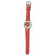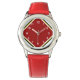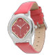 Usted parecerá definitivamente elegante en este reloj. Ofreciendo una banda roja y blanca, este reloj tiene una cara roja cardinal con el ajuste negro, blanco, y del oro y los números blancos.