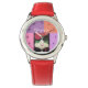 Reloj De Pulsera Rojo Ilustracion de nombre blanco negro de gato de