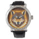 Reloj De Pulsera Rostro de lobo radiante iluminado por luz dorada