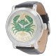 Signo de cáncer del zodiaco en verde y blanco en un reloj de pulsera.