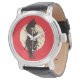 Diseño de Guay que presenta un ilustracion de un samurai con pintura gruesa salpicada de negro sobre una luna llena de blanco cortada.
