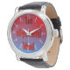 Este reloj cristiano presenta la gráfica "sangre todopoderosa" en rojo y azul como un recordatorio del sacrificio de Jesús.