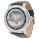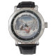This elegant wristwatch features a delightful Christmas scene. Santa Claus, with a sack of gifts, traverses a beautiful snowy landscape adorned with glistening pine trees. The enchanting background glow creates a magical, serene winter night. This timepiece is a charming and artistic holiday accessory, perfect for festive celebrations.