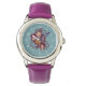 Estilo: Reloj infantil de pulsera de cuero morado y acero inoxidable