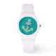 El reloj de pulsera náutico femenino con los adorables barcos de barco verde símbolo ancla y color de fondo de color bonito que puedes cambiar. Usa tu tiempo con estilo con este diseño temático marino, diseñado para mujeres o chicas.