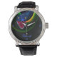 Guay watch, con una serpiente de neón abstracta, con la cabeza azul y los ojos amarillos, contra un fondo negro. Personalice el texto azul para que se ajuste a sus necesidades. Gran idea de regalo personalizada.