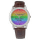 El brillo del arcoiris se encuentra con un tipo de letra morado profundo. Con texto personalizable por encima y por debajo del tiempo. Mantenga esta sugerencia o agregue su lema, nombre y una nota corta.