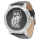 Icono de búho. Símbolo de sabiduría y riqueza. Diseño transparente blanco adecuado para objetos oscuros.