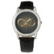 Oro, símbolo de infinito de joyas con estrellas doradas sobre fondo negro. Diseño con estrella dorada.