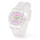 Las mujeres o damas miran lecturas, en letras verdes y pastel brillantes, SOY UN SOLDADO EN EL EJÉRCITO DE LA RESISTENCIA PACÍFICA. Watch tiene cara rosa pálido y números romanos azules. Podrá elegir entre una variedad de estilos de reloj, incluyendo algunos para niños y hombres.