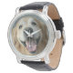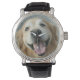 ¡Que un perro feliz te traiga una sonrisa a la cara! El diseño muestra una fotografía de un sonriente recuperador dorado, mostrada en un primer plano.