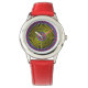 Esta cara de reloj está diseñada para darte la ilusión de movimiento. Los colores están en alto contraste y parecen como si la cara estuviera girando. Todos los colores son metálicos (dorado, rojo, azul y violeta) en un campo negro. No hay horas marcadas en la cara. Disponible en todos los estilos y colores.