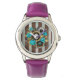 Reloj De Pulsera Steampunk Clock and Turquoise Roses on Striped
