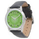 Green Sun Mandala Masculino protector de la corona de cuero negro reloj