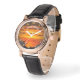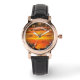 Pintura de la colección "Sunset Plaza Marina 2584" Haga un seguimiento del tiempo con un reloj Rosa de oro de personalizados Damas de EwatchFactory®. Este reloj femenino es de aleación con un acabado combinado pulido y cepillado reforzado por una correa de cuero. Personalice en la página del producto o haga clic en el botón "Personalizar" para obtener más opciones de diseño. El diseño creado a partir de mi pintura "Sunset Plaza Marina 2584" capta una vibrante puesta de sol con ramas de colores naranjas y rojos que llenan el cielo, enmarcado por vegetación de silueta y plantas florecientes en primer plano. Los colores brillantes del cielo contrastan dramáticamente con los contornos oscuros del paisaje, creando una escena serena pero dramática. Los productos coincidentes están disponibles en esta colección.