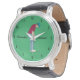 Reloj de pulsera verde de diseño con temática Golfer con texto personalizable.