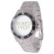 Reloj de acero inoxidable con lema latino Tempus Fugit en letras doradas