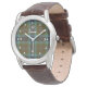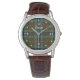 Elegante reloj de pulsera de correa de cuero, con el clásico patrón de manchas tartan del clan azul y marrón Thomson, en la cara, con números blancos y puntos durante las horas. El texto del personalizado blanco lee Thomson, y se puede personalizar para leer lo que se desea.