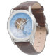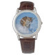Un reloj clásico de correa de cuero marrón para hombres que se muestra con una foto de tigre exótico de la vida silvestre. Elija este reloj de varios estilos. Personalizar este reloj o compra como está. Imagen de stock