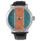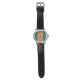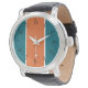 Combinando colores y estilo, este reloj presenta números negros sobre un fondo de rayas blancas, naranjas y aquagyanas. Establecerás el estándar para la moda cuando uses este reloj.
