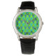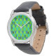 Este reloj masculino tiene un diseño Bauhaus de repetir trapezoides en tonos azules y verdes.
